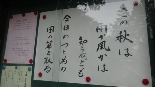 10月1日朝はウオ-キングを兼ねて墓参りした。夫婦して幹線から外れた農道を通って歩くと気分は爽やかになるものだ。 浜松市西区神ケ谷町洞雲寺の山門に掲示された今月の歌は「この秋は雨か風か知らねども、今日のつとめ田の草を取るなり」であった。 この…