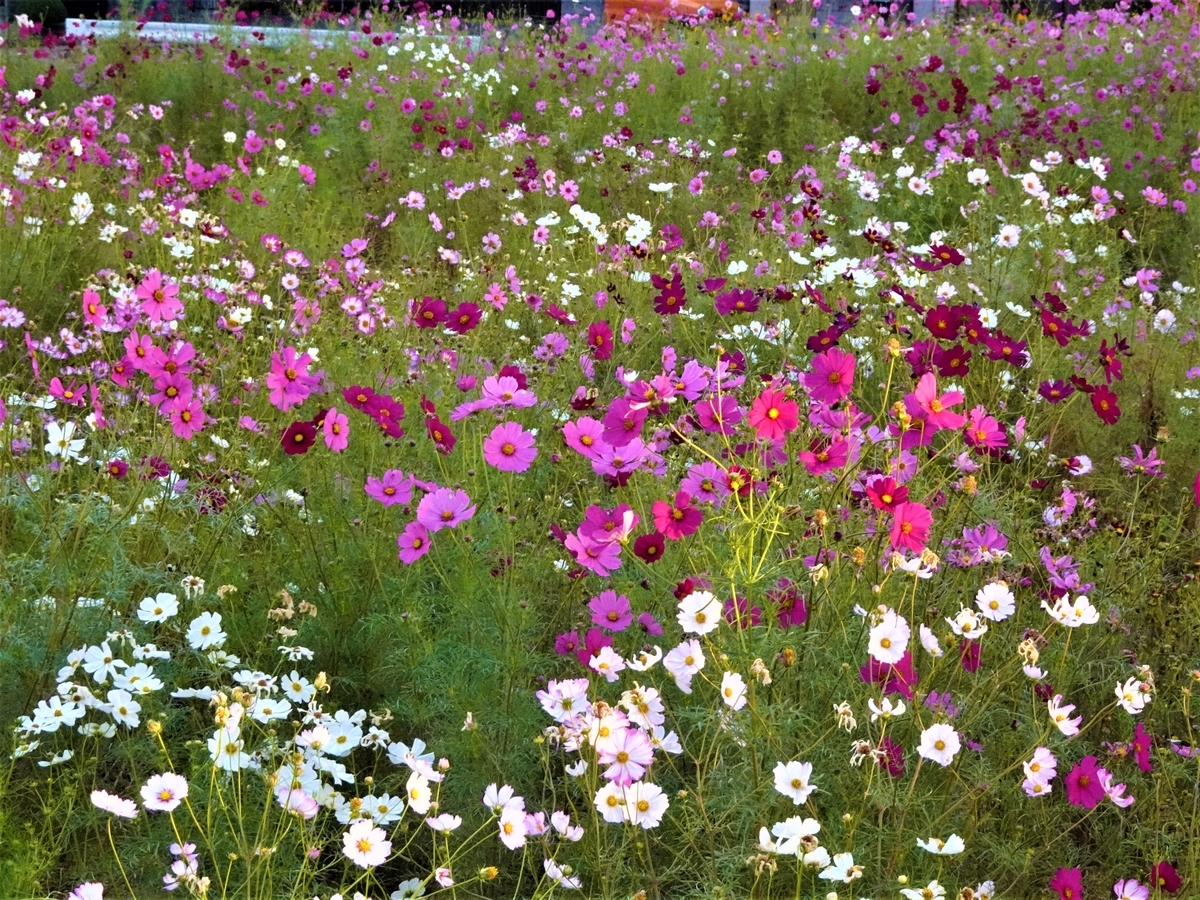 2022-10-17 神原町花の会(花美原会)(471) 神原町花畑のコスモスが見頃となりました 神原町花の会は、10月16日(日)0800〜0930、相佐末吉会長を中心に花畑の除草整備をしました。 コスモス畑はこれから最盛期となります。今回、通路など雑草の繁茂は激しいことから草取りなどをしました。 連日、花畑を訪れる方も多くなりました。オープンガーデンであり、自由に見物することができます。 ❶ 神原町花の会が管理する花畑 令和4年10月17日朝撮影 ❷ 花協同活動 令和4年10月16日午前撮影